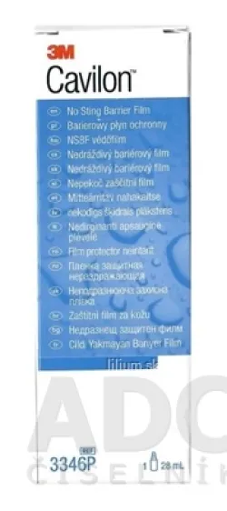 Bariérový film 3M Cavilon je polymerickým roztokom, ktorý po aplikácii na kožu a zaschnutí vytvára jednotnú vrstvu ochranného filmu. Nedráždi poškodené tkanivo.