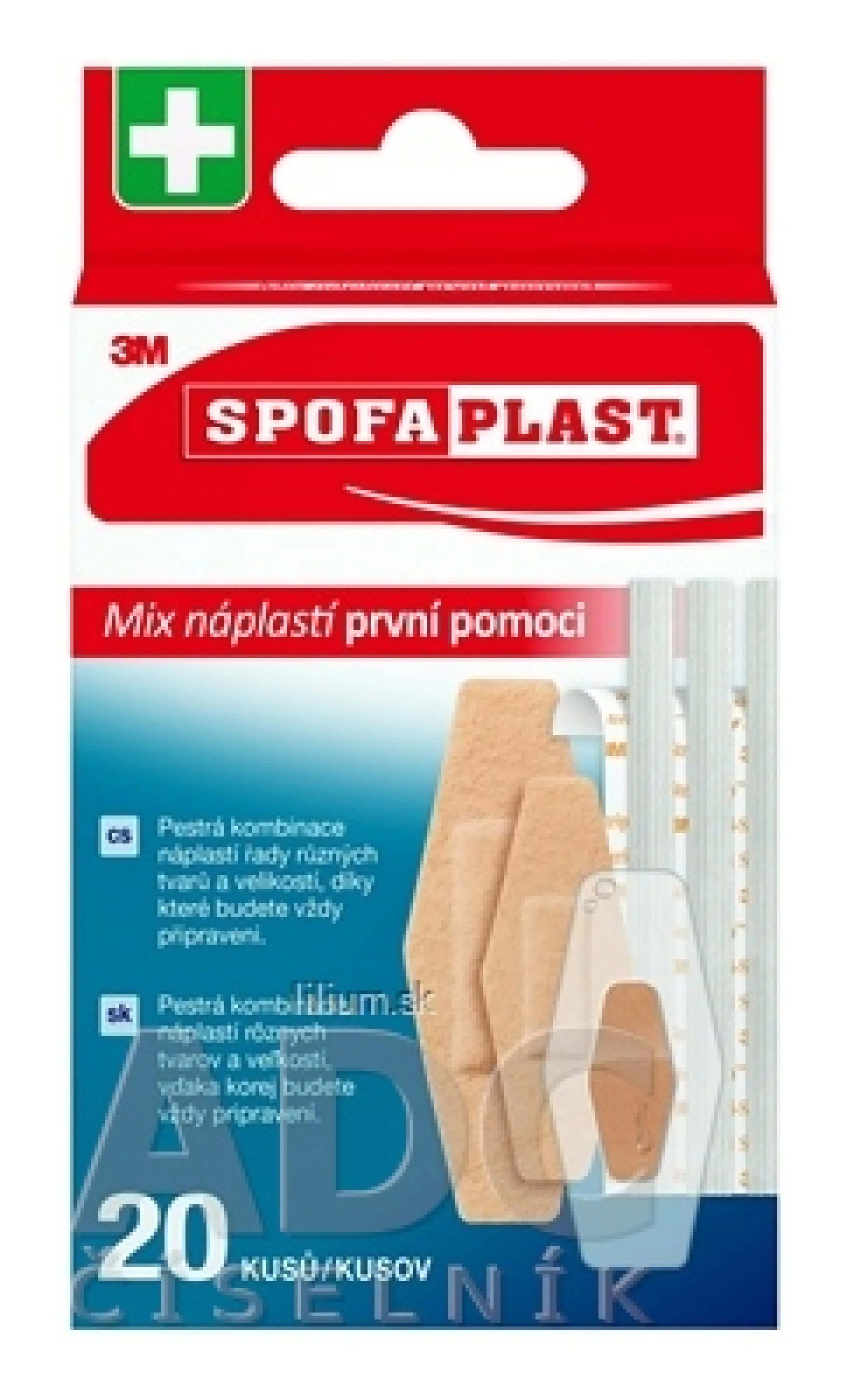Náplastí (balenie prvej pomoci) je viacúčelové balenie obsahujúce 20 náplastí rôznych tvarov a veľkostí.
