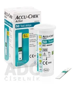 Testovacie prúžky na zistenie glykémie z kvapky kapilárnej krvi v glukomeri ACCU-CHEK Active. Viac na adcc.sk