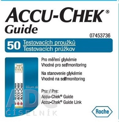 Testovacie prúžky ku glukomeru Accu-Chek Guide/Guide Link sú určené na kvantitatívne stanovenie glukózy v čerstvej kapilárnej plnej krvi z prsta, dlane, predlaktia a nadlaktia ako pomôcka pri monitorovaní efektívnosti kontroly glykémie. Viac na adcc.sk