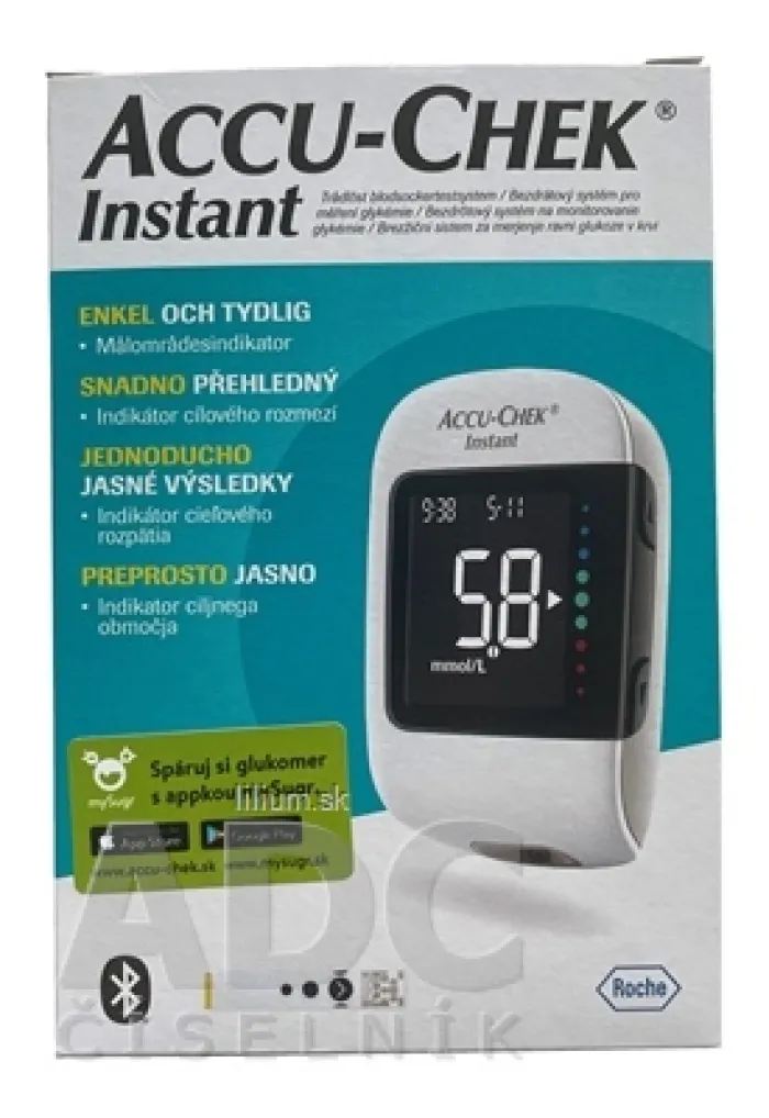 Glukomer Accu-Chek Instant s testovacími prúžkami sú určené na kvantitatívne stanovenie glukózy v čerstvej kapilárnej plnej krvi z prsta, dlane, predlaktia a nadlaktia ako pomôcka pri monitorovaní efektívnosti kontroly glykémie. Sú vhodné na diagnostickú samokontrolu mimo tela pre osoby s diabetom pre jednoduché, rýchle a presné meranie glykémie. Nový systém.