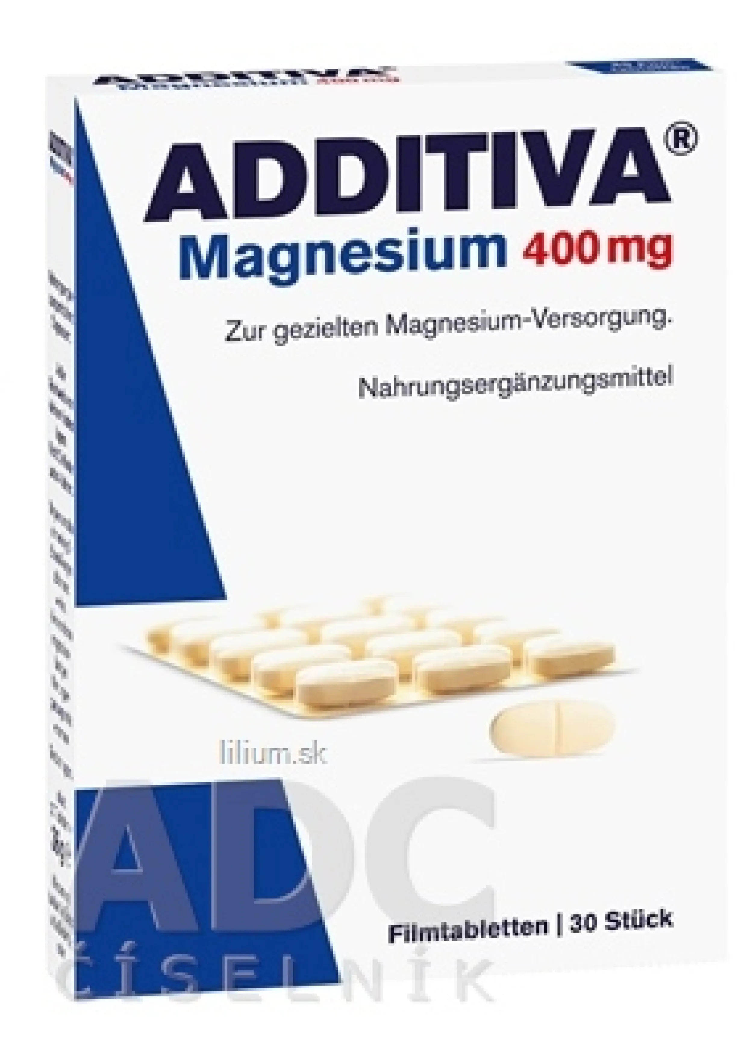 Výživový doplnok, prípravok s minerálom horčík (400 mg v 1 tablete).
