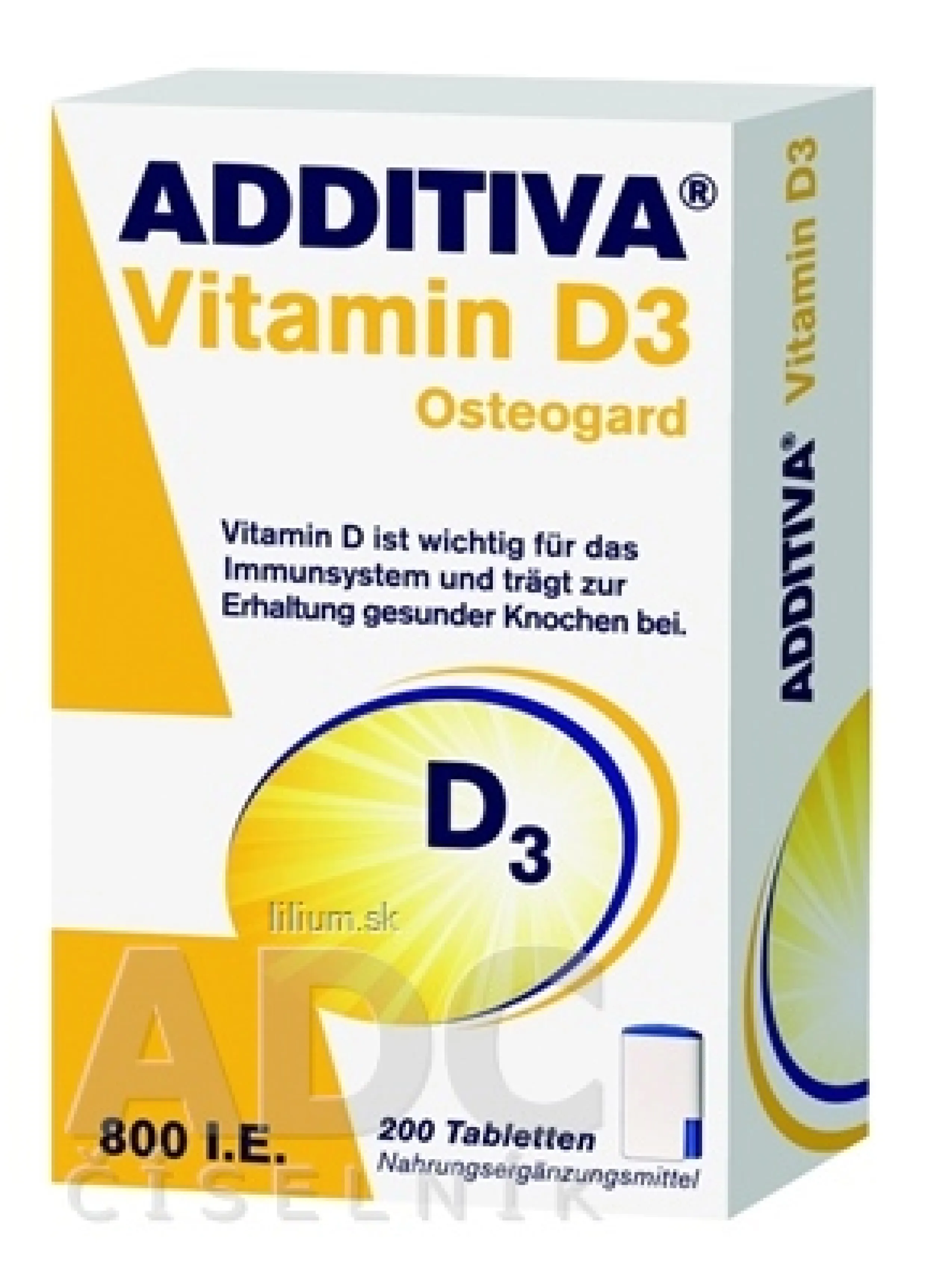 Jedna tableta (0,05 g) obsahuje: vitamín D3 20µg = 800 I.E. 400 % RVH* (*RVH – referenčná výživová hodnota priemerného dospelého. )