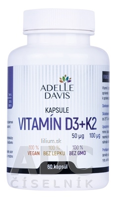 Výživový doplnok s obsahom vitamínu D3 a vitamínu K2 vo forme kapsúl. 1 kapsula obsahuje 100 mcg vitamínu K2 a 50 mcg vitamínu D3.
