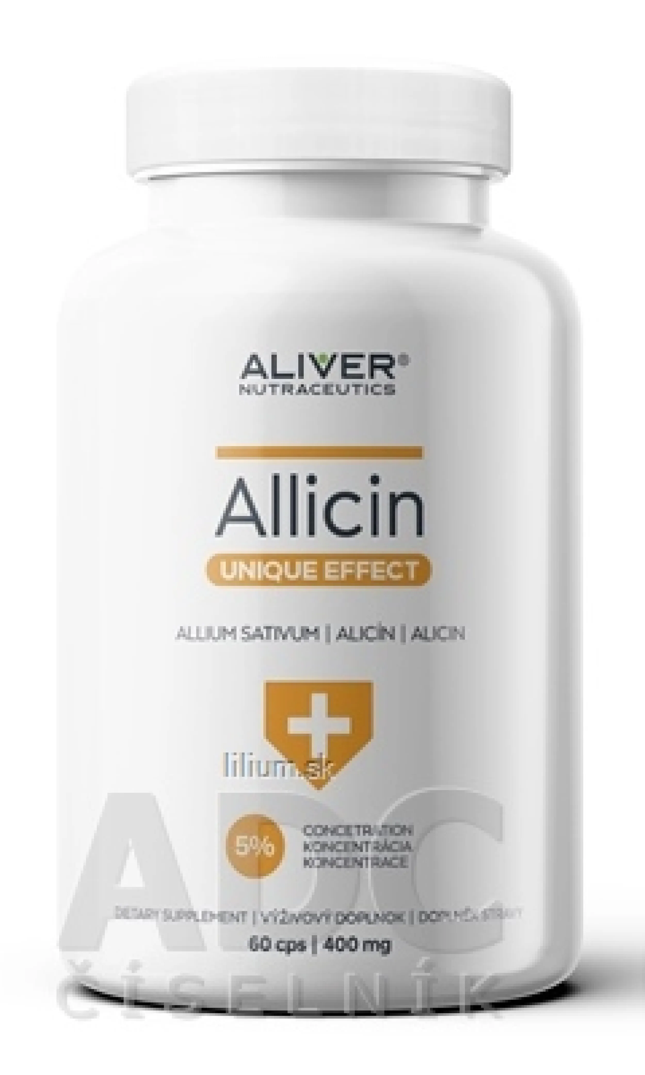 Zloženie: 250 mg Alicín (5% koncentrát) z cesnaku kuchynského (Allium sativum), 150 mg Maltodextrín, želatínová kapsula (HPMC). Viac na adcc.sk