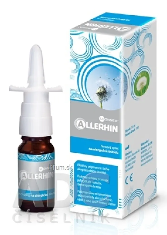 Allerhin sprej je nosový sprej na liečbu a prevenciu vzniku alergickej rinitídy. Je určený na každodenné použitie. Klinické štúdie preukázali, že Allerhin sprej poskytuje úľavu od symptómov akútnej alergickej nádchy (rinitídy) ako kýchanie, výtok z nosa, opuch nosnej sliznice. Allerhin nosový sprej na alergickú nádchu (rinitídu) kombinuje inovatívnu technológiu ochrany nosej sliznice pred namáhaním prostredníctvom aktívnej molekuly AMINO-PROTECT s preukázaným efektom morských solí.