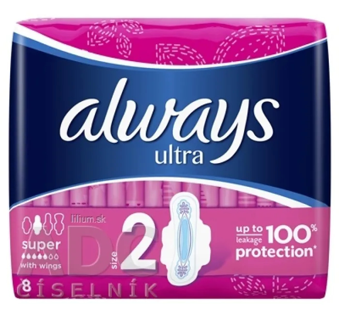 - ultra absorpčné jadro obsahuje špeciálny materiál, ktorý rýchlo absorbuje tekutinu a uzamkne vnútri vložky v niekoľkonásobne vyššom množstvo než sama váži,