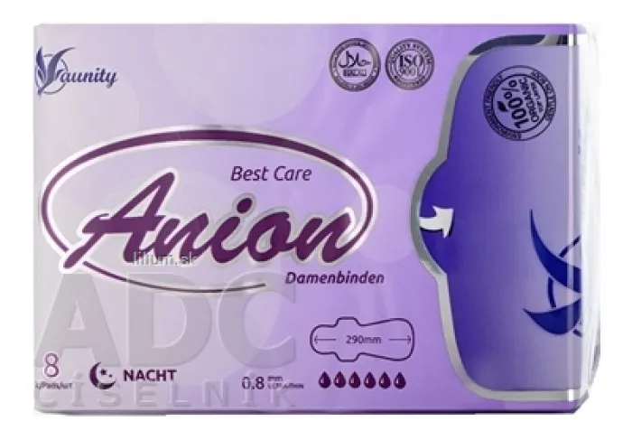 hygienické vložky aniónové nočné, 9500 - 10000 aniónov / cm3, (fialový obal) 1x8 ks