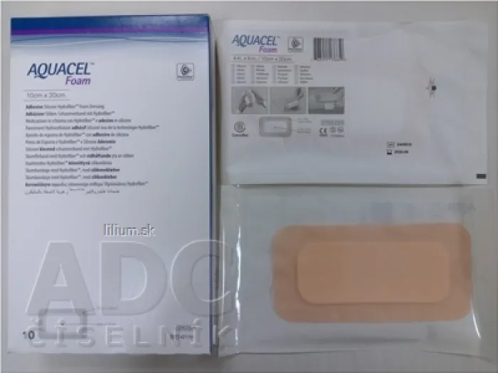 AQUACEL™ Foam je sterilné penové krytie na ranu určené na vytváranie a udržanie vlhkého prostredia s vysokou absorpčnou schopnosťou. Penové krytie adhezívne so silikónovým okrajom, 10x20 cm má aktívnu veľkosť absorpčného vankúšika 6x15 cm, obsahuje 10 ks krytia, individuálne balených. Pena a vrstva Hydrofiber absorbujú veľké množstvo exsudátu a baktérií z rany dovnútra absorpčného vankúšika.