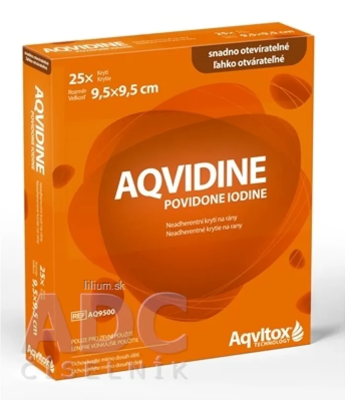 neadherentné krytie na rany, s jódpovidónom, 9,5 x 9,5 cm, 1x25 ks
