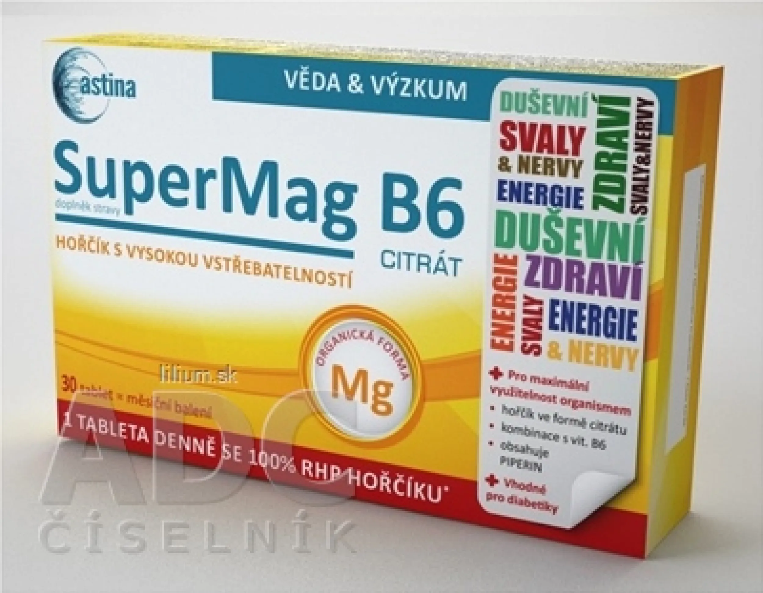 Výživový doplnok vo forme tabliet obsahuje horčík s vysokou vstrebateľnosťou (organická forma horčíka - citrát) v kombinácii s vitamínom B6.