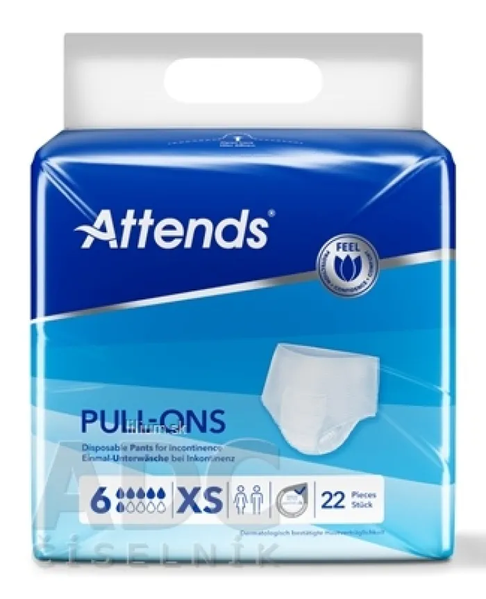 Attends Pull-Ons je ucelený rad plienkových nohavičiek, ktoré sa jednoducho obliekajú a vyzliekajú ako klasická spodná bielizeň. Sú určené pre zvládnutie strednej a ťažkej inkontinencie moču a/lebo stolice.