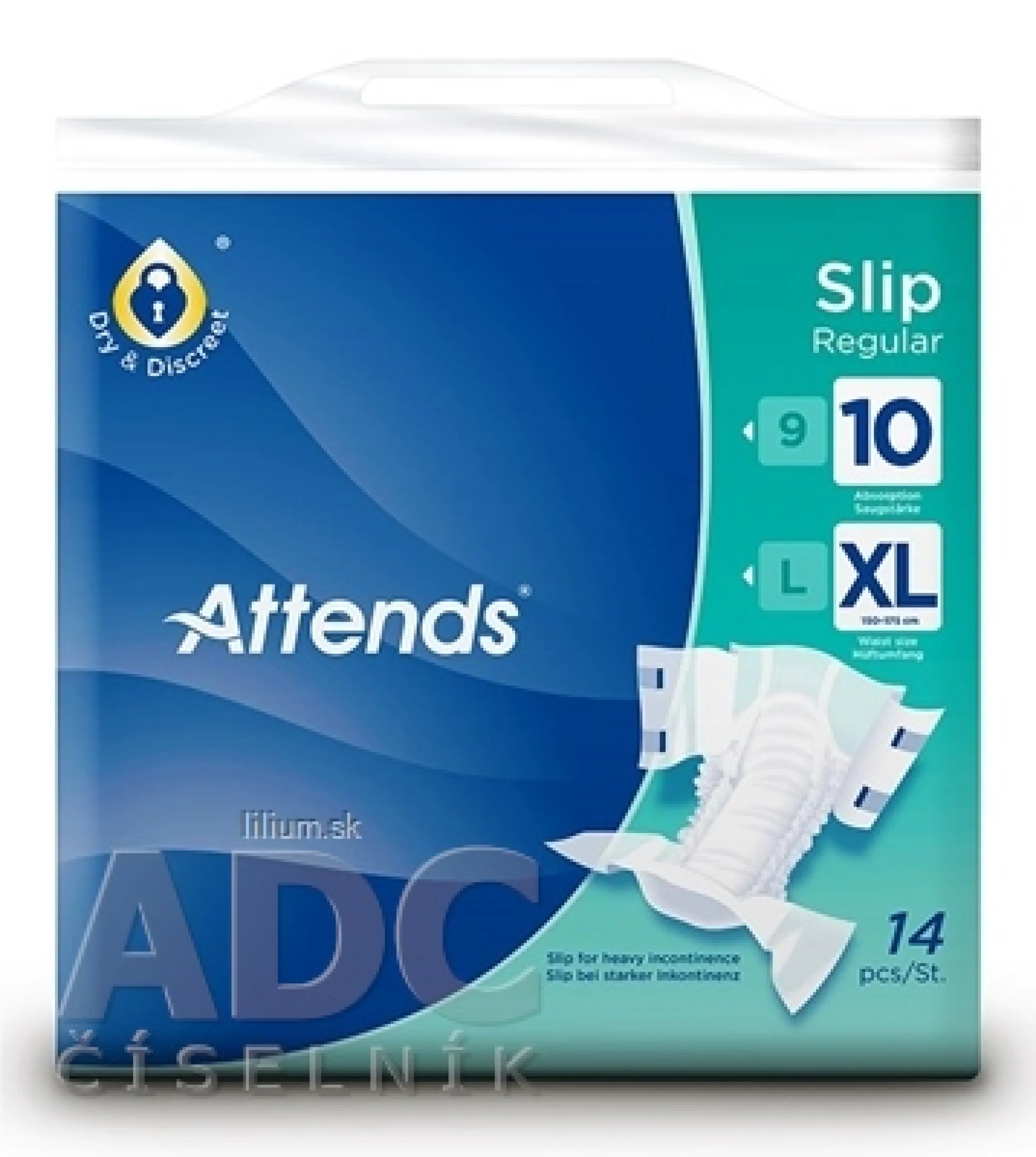 • savé jadro pomôcok Attends Slip Regular je vybavené systémom ochrany proti zápachu Attends Odour Protection, ktorý uzamkne tekutinu vo vnútri jadra a zabráni tak unikaniu nepríjemného zápachu,