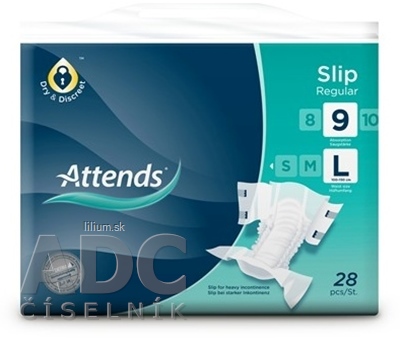 • savé jadro pomôcok Attends Slip Regular je vybavené systémom ochrany proti zápachu Attends Odour Protection, ktorý uzamkne tekutinu vo vnútri jadra a zabráni tak unikaniu nepríjemného zápachu