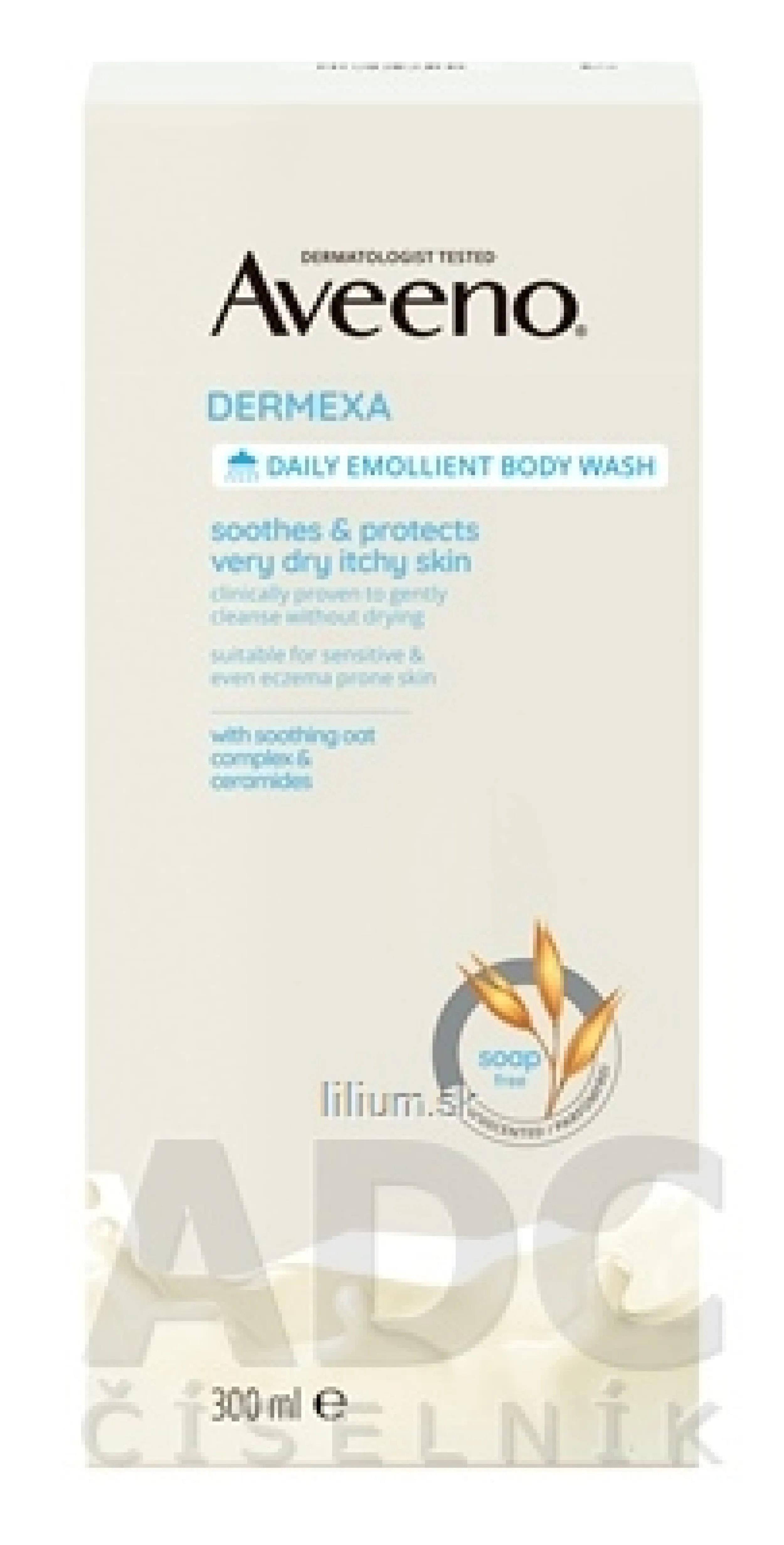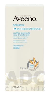 Aveeno Dermexa Emolienčný sprchovací gél upokojuje a chráni veľmi suchú, svrbiacu pokožku, čistí jemne bez vysušovania – klinicky preukázané. Vhodný na veľmi suchú, citlivú pokožku a tiež na pokožku so sklonom k vzniku ekzému.