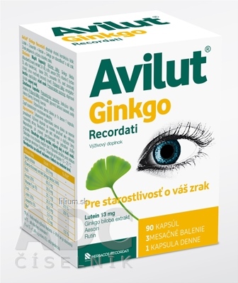 Výživový doplnok obsahuje kombináciu látok: Lutein + Zeaxanthin + Aescín + Ginkgo.