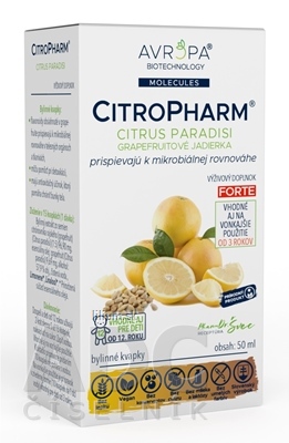 Výživový doplnok. Bylinné kvapky obsahujú zmes bylinného extraktu a esenciálneho oleja z citrónovníka rajského (grapefruit) (Citrus paradisi).