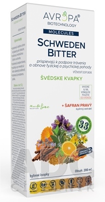 Zloženie v 5 ml (1 ČL): Zmes bylinných extraktov (citrónovník pomarančový horký oplodie (Citrus aurantium var. amara) 9,31 mg, mučenka pleťová vňať (Passiflora incarnata) 9,31 mg, archangelika lekárska koreň (Archangelica officinalis) 7,45 mg, horec žltý koreň (Gentiana lutea) 7,45 mg, puškvorec obyčajný podzemok (Acorus calamus) 7,45 mg, kasia úzkolistá list (Cassia senna) 7,45 mg, rebarbora dlanitá koreň (Rheum palmatum ) 7,45 mg, aloa kapská živica (Aloe capensis) 5,59 mg, bedrovník anízový plod (Pimpinella anisum) 5,59 mg, benedikt lekársky vňať (Cnicus benedictus) 5,59 mg, betonika lekárska vňať (Stachys officinalis) 5,59 mg, kardamóm liečivý plod (Elettaria cardamomum) 5,59 mg, krasovlas bezbyľový koreň (Carlina acaulis) 5,59 mg, kurkuma citvárová koreň (Curcucma zedoaria) 5,59 mg, ľubovník bodkovaný vňať (Hypericum perforatum) 5,59 mg, myrhovník pravý živica (Commiphora myrrha) 5,59 mg, nátržník husí vňať (Potentilla anserina) 5,59 mg, nechtík lekársky kvet (Calendula officinalis) 5,59 mg, oman pravý podzemok (Inula helenium) 5,59 mg, palina pravá vňať (Artemisia absinthium) 5,59 mg, pamajorán obyčajný vňať (Origanum vulgare) 5,59 mg, gáfor kryštalická látka (Camphora officinarum) 5,40 mg, púpava lekárska koreň (Taraxacum officinale) 4,65 mg, pýr plazivý koreň (Elytrigia repens) 4,65 mg, repík lekársky vňať (Agrimonia eupatoria ) 4,65 mg, senovka grécka semeno (Trigonella foenum- graeceum) 4,65 mg, šalvia lekárska list (Salvia officinalis) 4,65 mg, škorica čínska kôra (Cinnamomum cassia ) 4,65 mg, valeriána lekárska koreň (Valeriana officinalis) 4,65 mg, yzop lekársky vňať (Hyssopus officinalis) 4,65 mg, zemežlč menšia vňať (Centaurium erythraea) 4,65 mg, žihľava dvojdomá vňať (Urtica dioica) 4,65 mg, šafran siaty blizny (Crocus sativus) 0,19 mg, alkohol: 43,01 % obj., čistená voda. Viac na adcc.sk