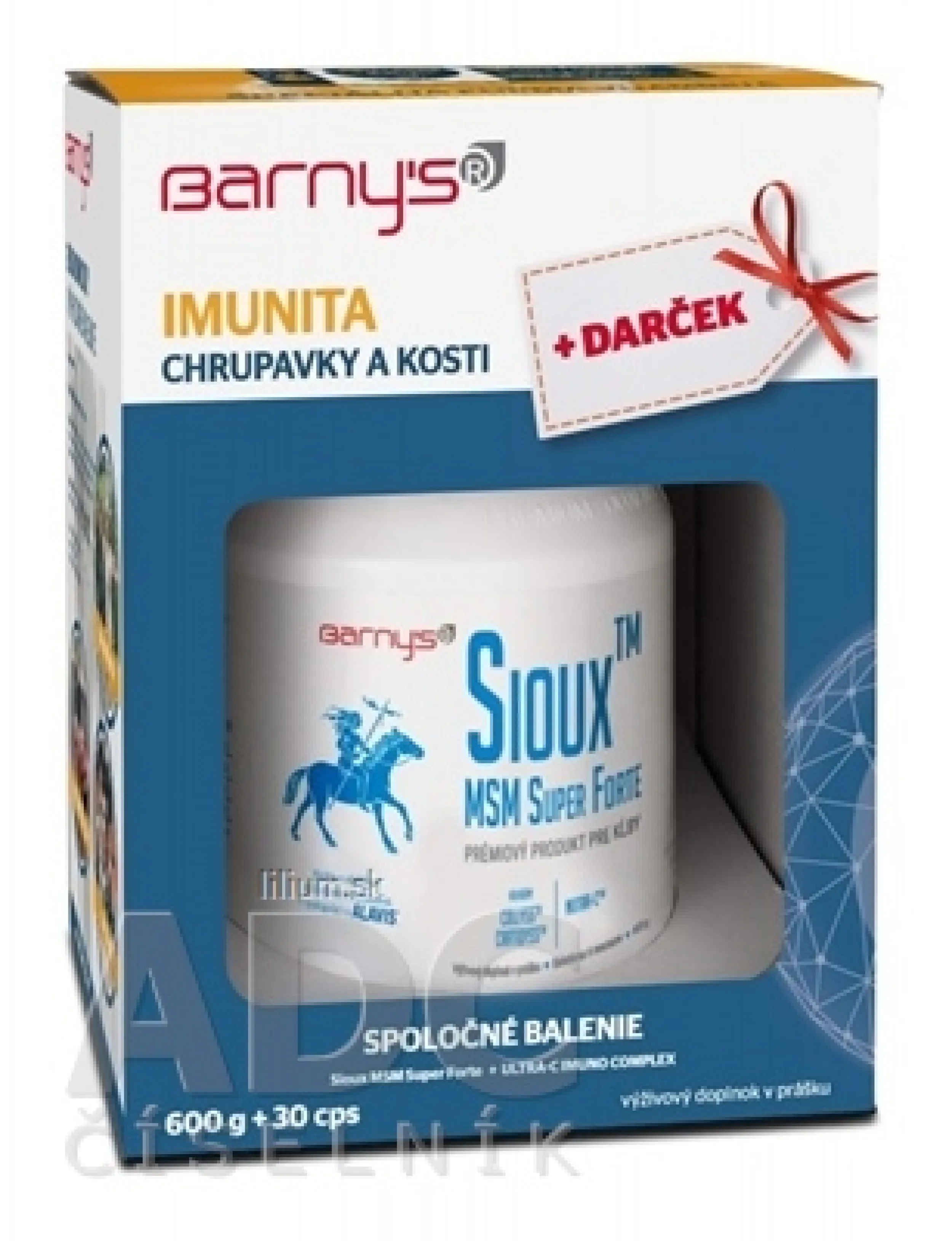 Barny´s Sioux MSM Super Forte výživový doplnok v prášku obsahuje MSM, dva typy kolagénov a vitamín C.