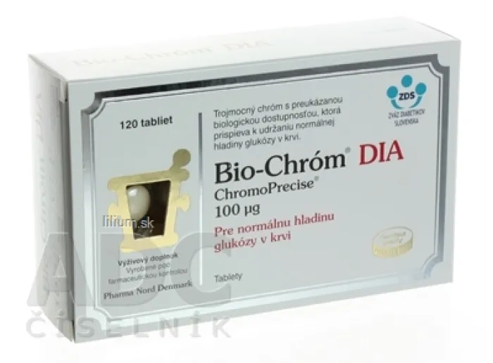 Výživový doplnok Bio-chróm dia s 100 µg dôležitého stopového prvku chrómu v každej tablete. Chróm je v tomto prípravku vyrobený spôsobom, ktorý zaisťuje jeho vynikajúcu biologickú dostupnosť.