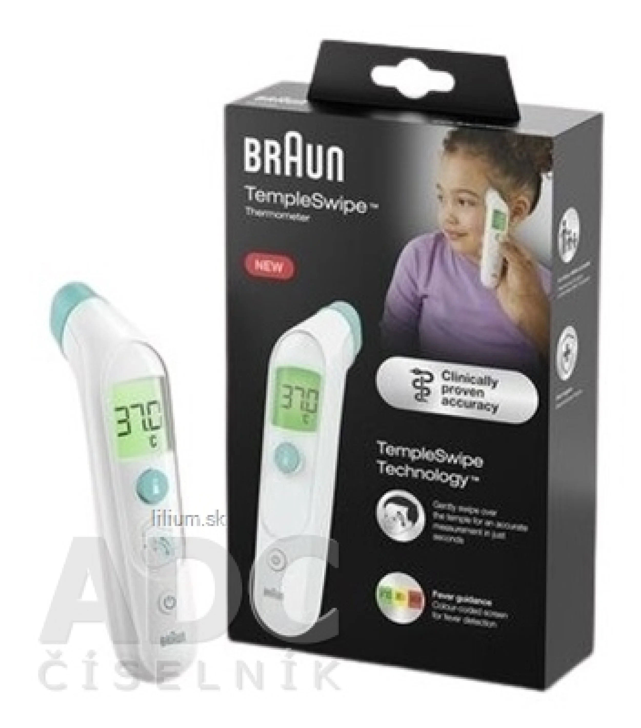- Rýchle a presné meranie na spánku. Pomocou technológie Braun TempleSwipe TechnologyTM teplomer zachytáva teplo prirodzene vyžarované spánkom a vypočítava teplotu ekvivalentnú teplote ústnej dutiny.