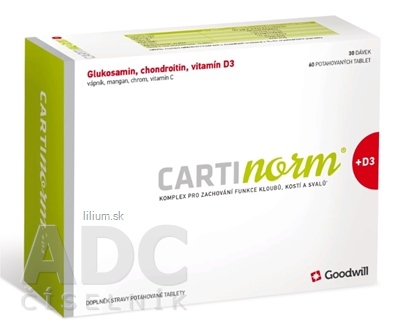 Výživový doplnok vo forme filmom obalených tabliet s obsahom glukozamínu, chondroitínu, vitamínov a minerálov.