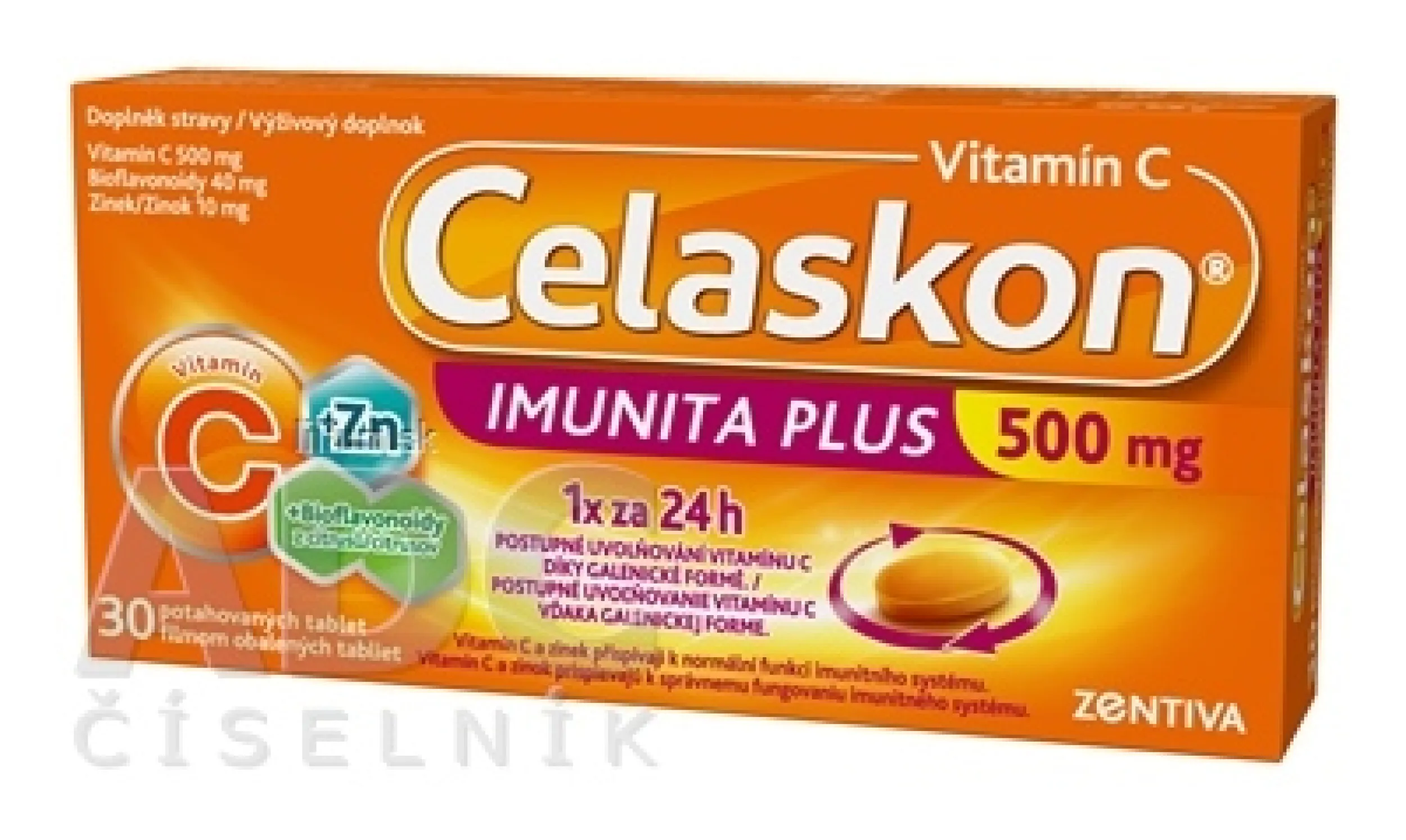 1 filmom obalená tableta obsahuje 500 mg vitamínu C, 40 mg bioflavonoidov, 10 mg zinku.