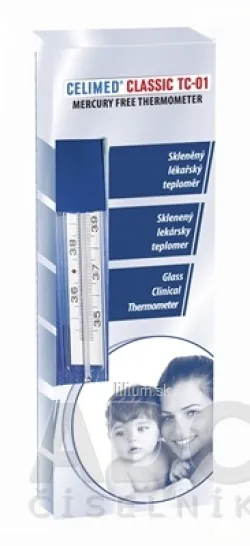 Klasický lekársky sklenený bezortuťový teplomer s Gáliom.