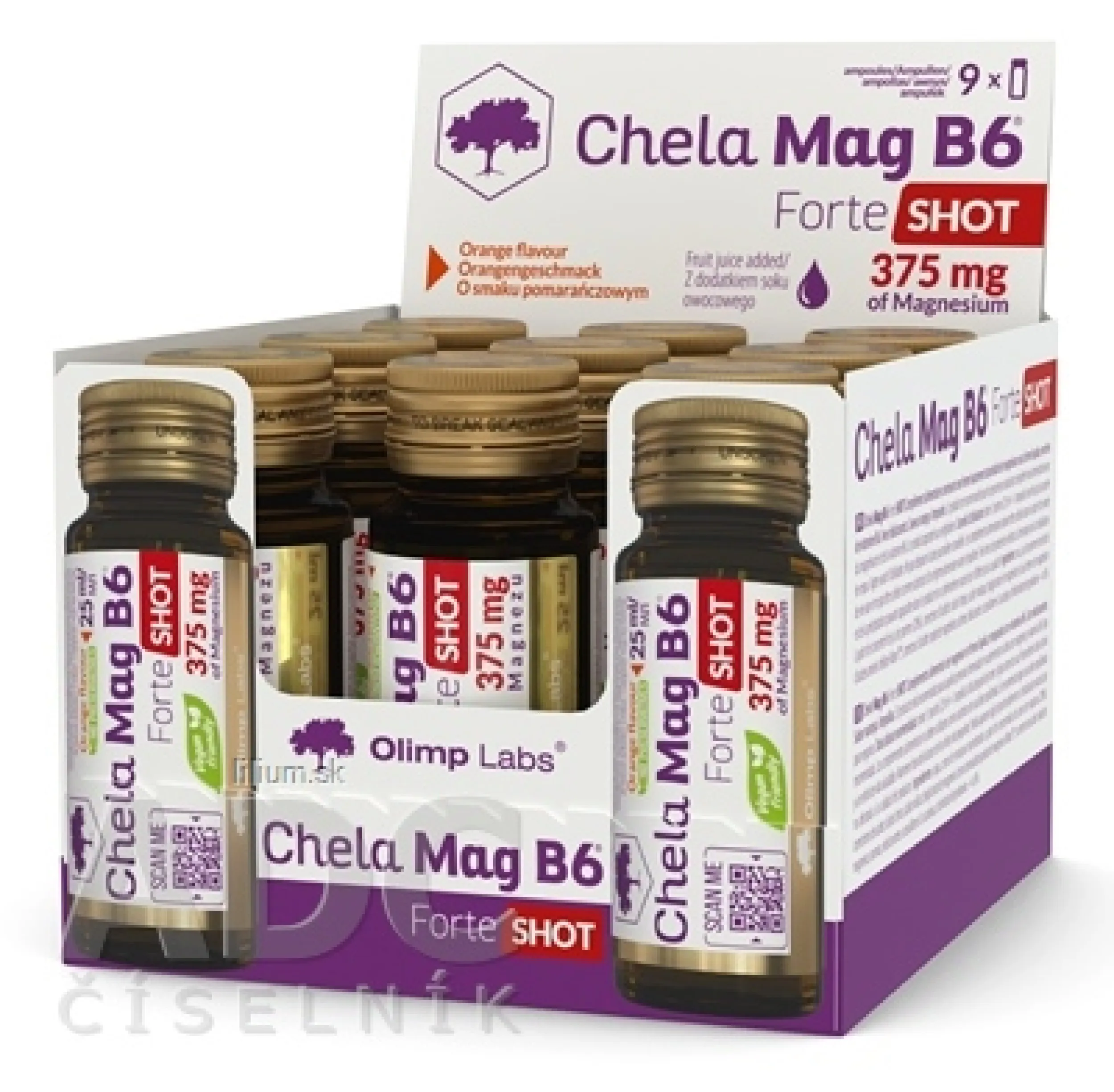 Aktívne látky v 1 ampulke (25 ml): diglycinát horečnatý (horčík/magnézium, 375 mg (100% RVH), pyridoxín hydrochlorid (vitamín B6, 1,4 mg (100% RVH). (*RVH - referenčné výživové hodnoty). Viac na adc.sk
