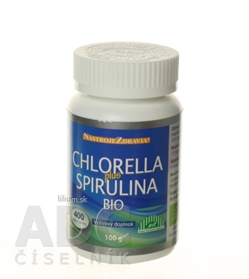 Výživový doplnok CHLORELLA plus SPIRULINA BIO je zmes chlorely a spiruliny obsahujúca vitamíny, minerály, bielkoviny, aktívne enzýmy a chlorofyl.