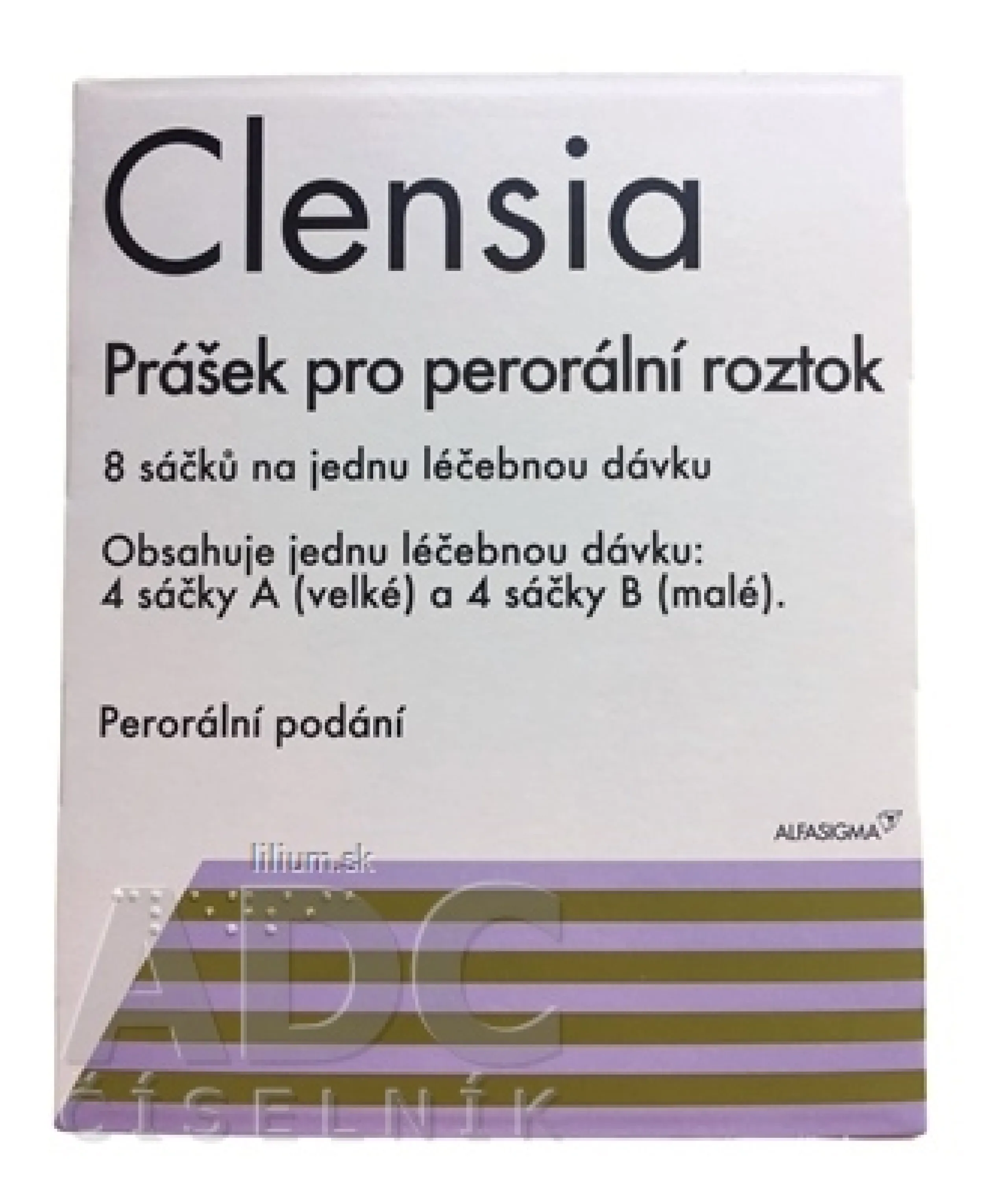 Liek je črevný prípravok s obsahom viacerých liečiv rozdelených do 2 separátnych vreciek A a B: