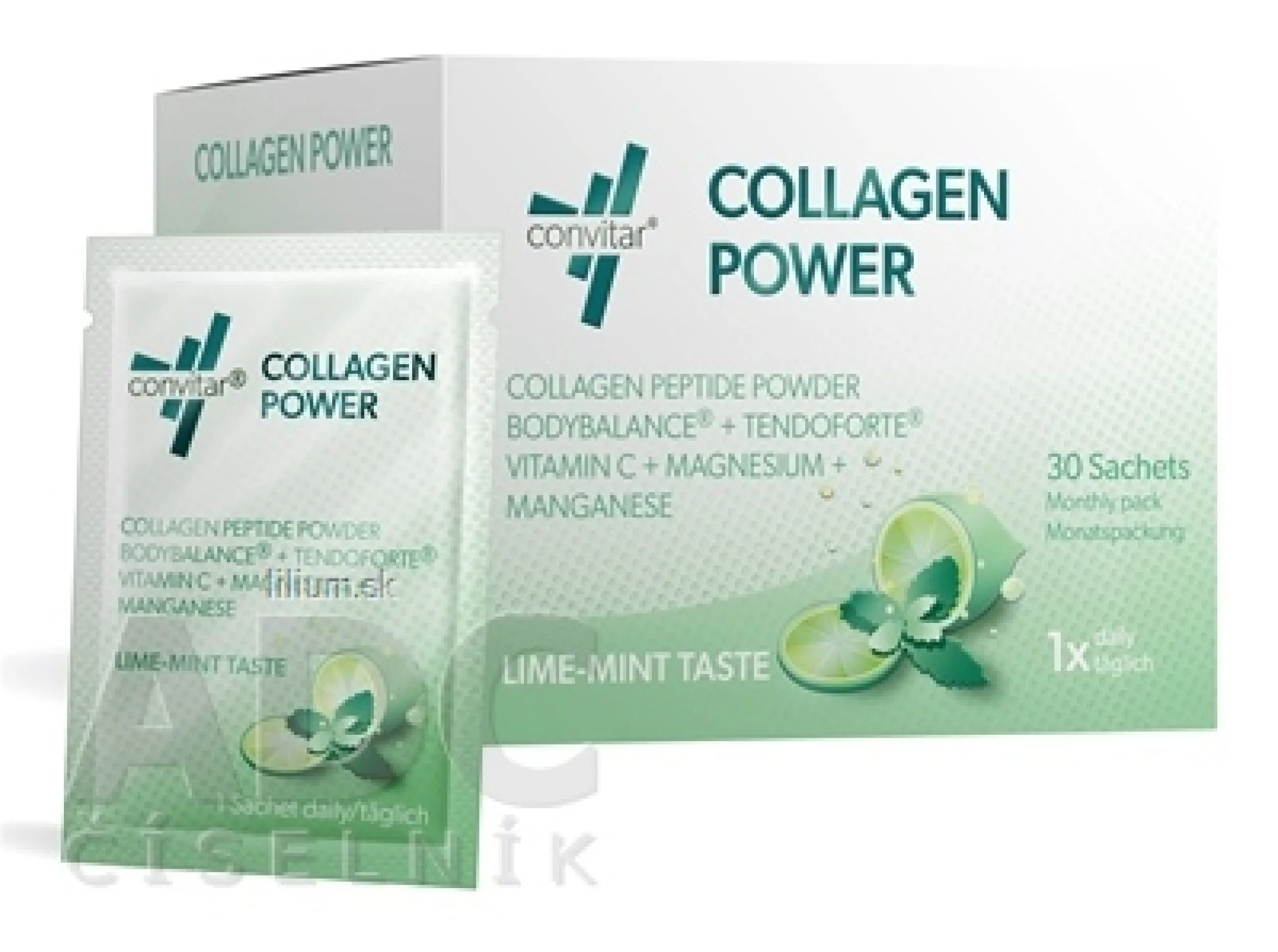 Výživový doplnok CONVITAR® Collagen obsahuje kolagénové peptidy, vitamín C, magnézium a mangán.