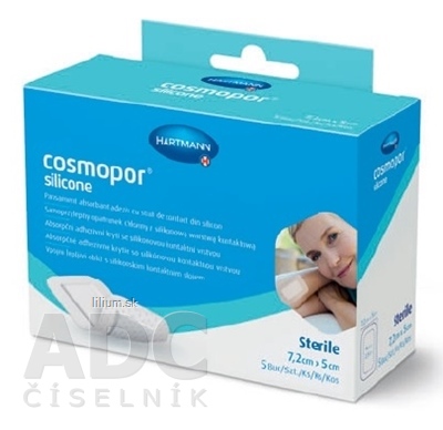 Sterilné absorpčné adhezívne krytie so silikónovou kontaktnou vrstvou.