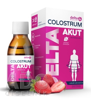 Tekutý výživový doplnok DELTA COLOSTRUM®, odtučnený a zbavený kazeínu s prírodnou jahodovou príchuťou vo forme tyčinky.