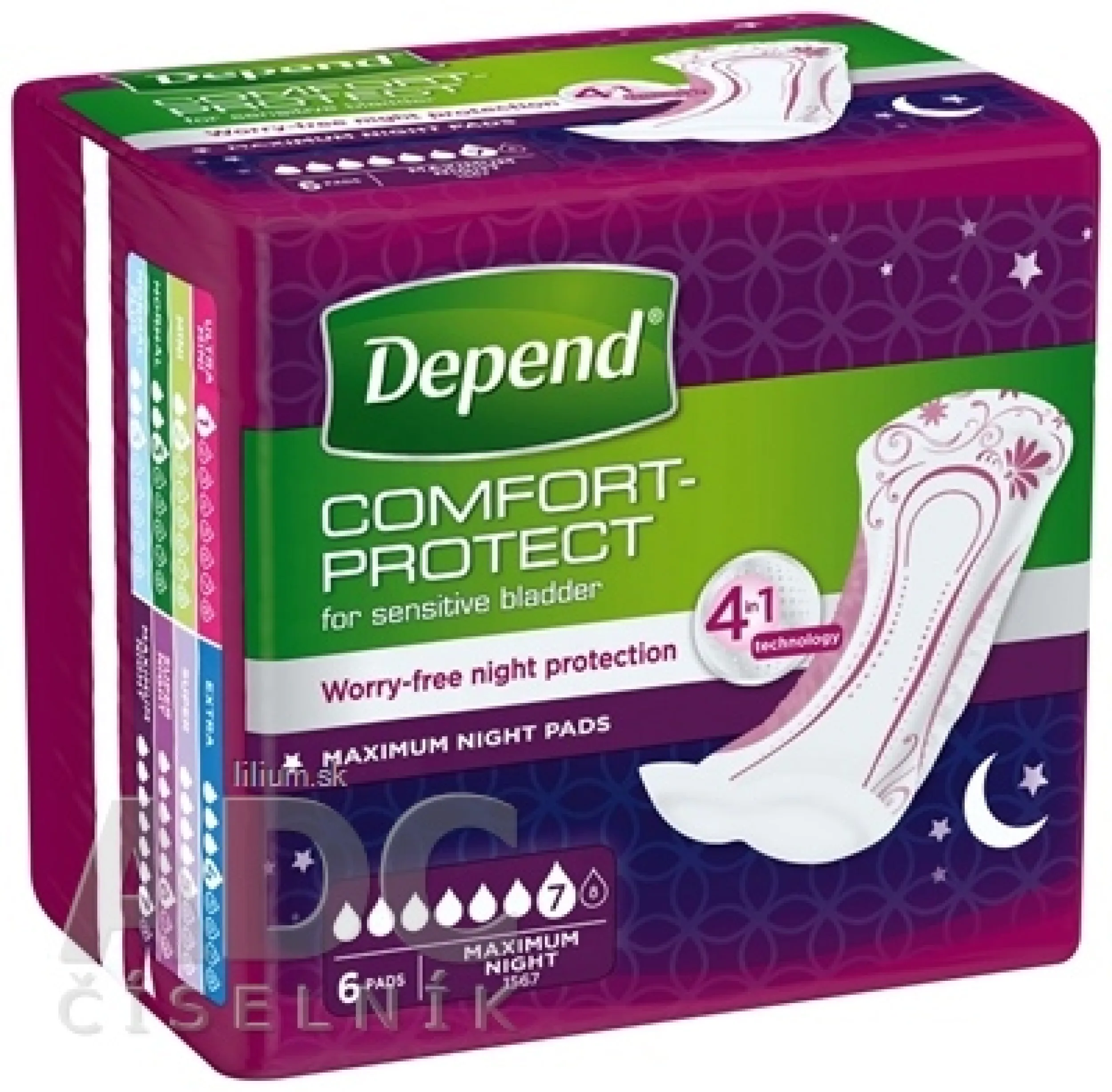 Absorpčné vložky pre ženy s ľahkým stupňom inkontinencie. Savosť 953 ml, rozmery vložky: 12,5 x 34 cm. V balení sa nachádza 6 kusov, každá vložka je jednotlivo balená.