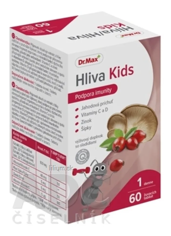 Prípravok vo forme žuvacích tabliet s prírodnou jahodovou príchuťou obsahuje extrakt zhlivy ustricovej a plod ruže šípkovej, vitamín C a D a zinok.