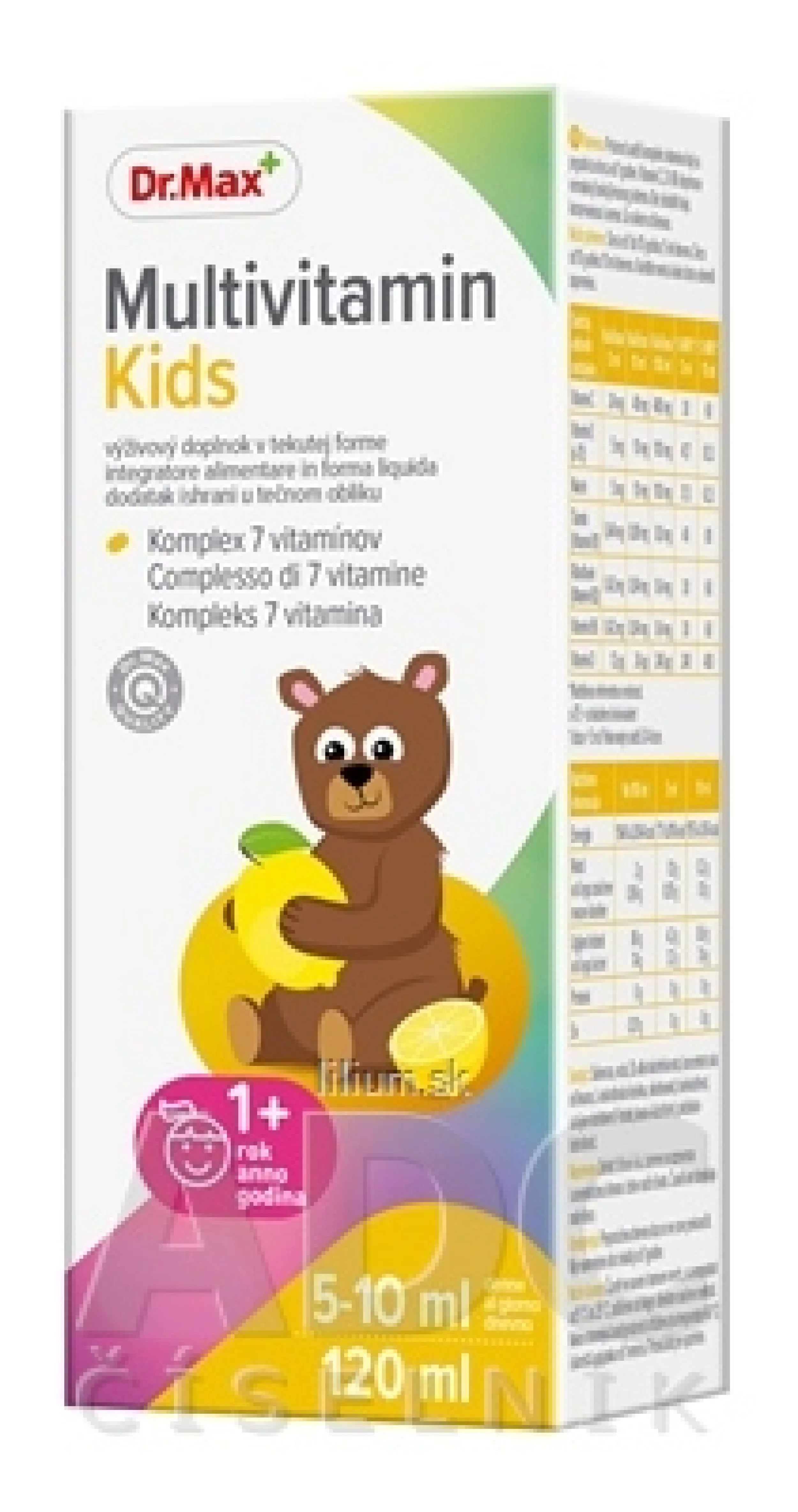 Výživový doplnok obsahuje komplex 7 vitamínov v tekutej forme vhodný pre deti od 1 roku. S citrónovou šťavou.