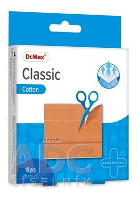 Bavlnená náplasť určená na nastrihanie, veľkosť 8 cm x 10 cm, 10 ks v balení.