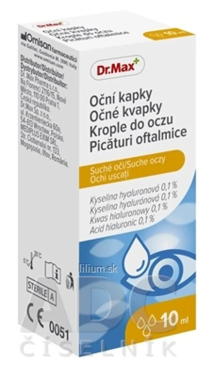 Očná roztoková instilácia na suché oči. Sterilný, izotonický, hydratačný, zvlhčujúci a lubrikačný roztok s hyaluronátom sodným (0,1 %). Prispieva k úľave a zvlhčeniu očí v prípade: