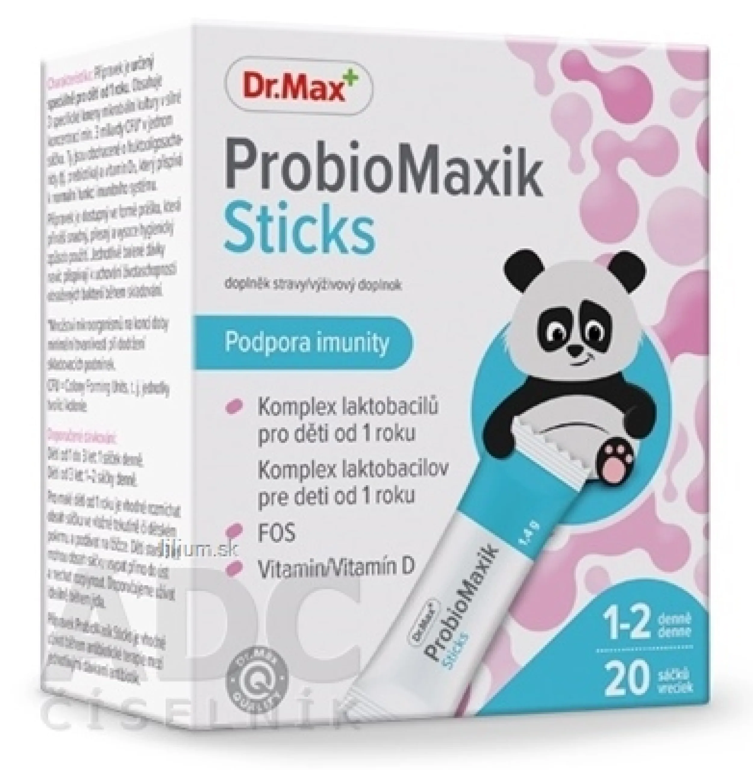 Prípravok je určený špeciálne pre deti od 1 roku. Obsahuje 3 špecifické kmene mikrobiálnej kultúry v silnej koncentrácii 3 miliardy CFU* v jednom vrecku. Tie sú obohatené o fruktooligosacharidy (t. j. prebiotiká) a vitamín D3, ktorý prispieva k správnej funkcii imunitného systému.