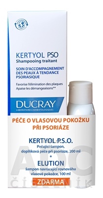 Kertyol P.S.O.: Ošetrujúci šampón navracajúci rovnováhu vlasovej pokožke je doplnkovou starostlivosťou pre pokožku hlavy s plakmi suchých silných lupín, niekedy sprevádzaných intenzívnym svrbením. Jeho znášanlivosť bola testovaná v kombinácii s medikamentóznou liečbou při psoriáze. Kertyol P.S.O. šampón prispieva efektívne a dlhodobo na ovplyvnenie všetkých týchto faktorov: 1. Kyselina salicylová podporuje odlupovanie a odstraňovanie suchých a silných plakov. 2. Látka vederine TM posilňuje kožnú bariéru stimuláciou fyziologickej hydratácie pokožky hlavy. 3. Vďaka celastrolu upokojuje svrbenie už po prvých aplikáciách. 4. Ichtyol, ktorý normalizuje bunečnú obnovu, obmedzuje zosilňovanie plakov a predchádza ich opätovnému návratu. Účinnosť preukázaná po 8 týždňoch. Používanie šampónu 1× týždenne v udržovacej fáze môže dlhodobo zabránit opätovnému výskytu silných plakov šupín.