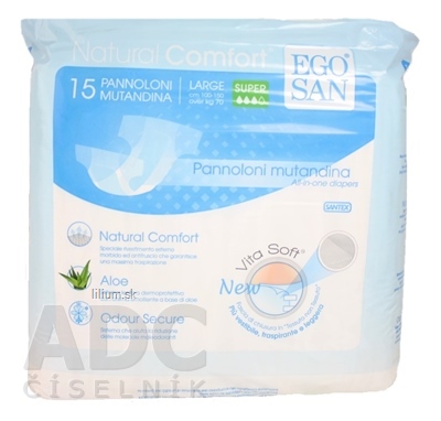 Anatomicky tvarované plienkové nohavičky pre dospelých na trvalý únik moču. Savosť 3400 ml, obvod pása 115-150cm.
