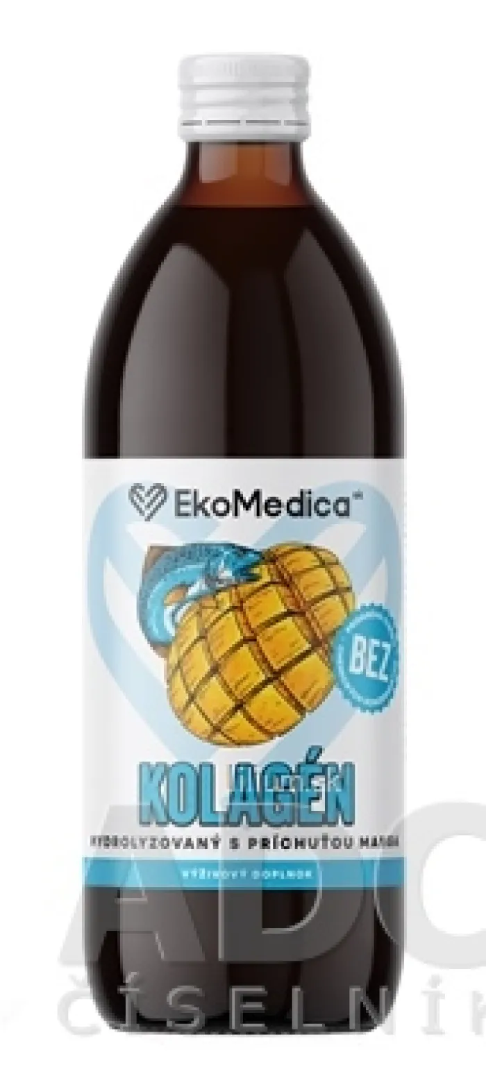 Výživový doplnok v tekutej forme, s príchuťou manga, s obsahom hydrolizovaného kolagénu.