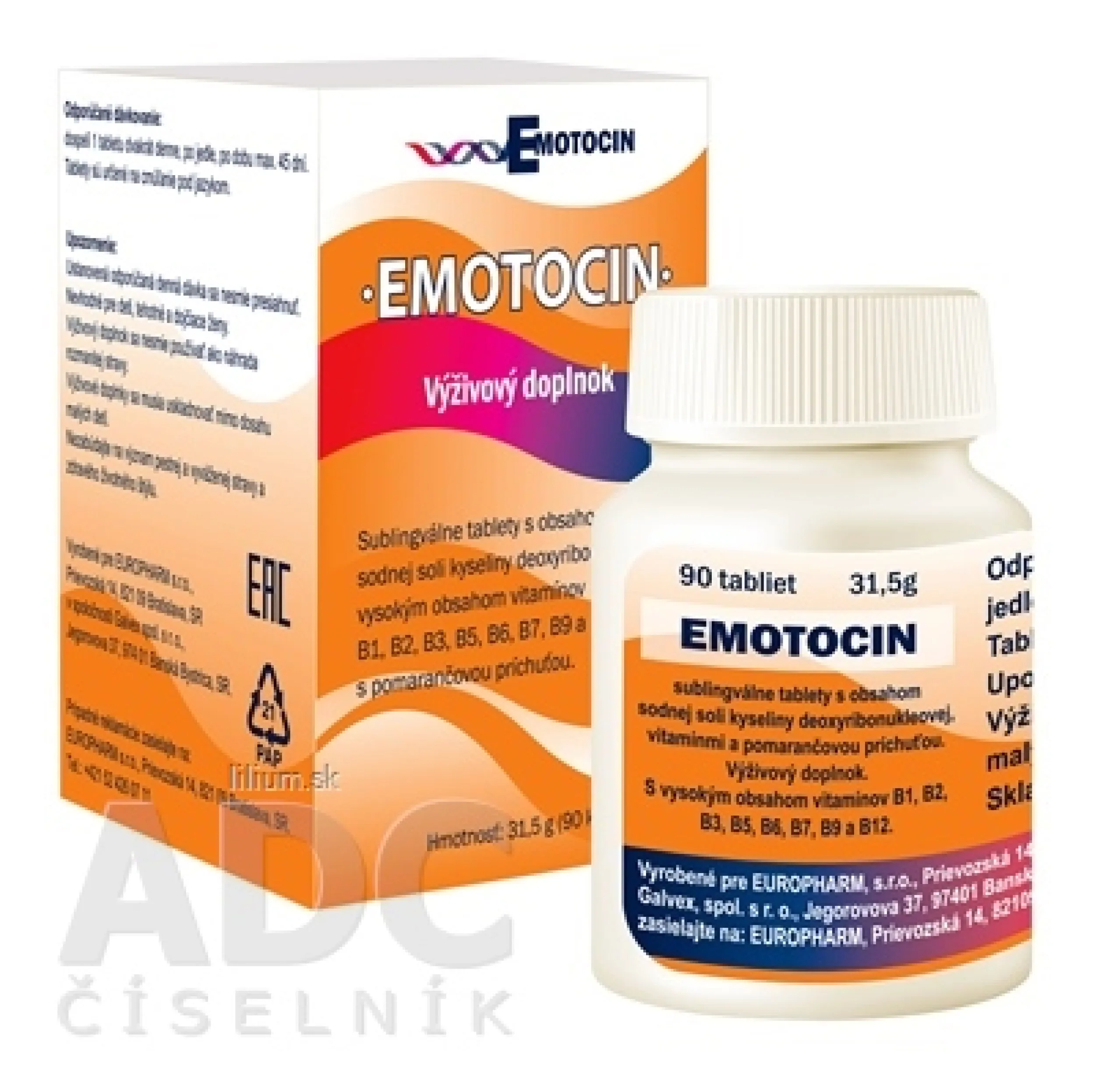 Zloženie (v dennej dávke – 2 tablety): zvlhčovadlo: sorbitol; stabilizátor: sodná soľ karboxymetylcelulózy; objemové činidlo: polyvinylpyrolidón, maltodextrín; zmes vitamínov: niacín (nikotínamid) 10 mg (62,5 % RVH*), kyselina pantoténová (D-pantotenát vápenatý) 8 mg (133 % RVH*), vitamín B1 (tiamínmononitrát) 2 mg (182 % RVH*), vitamín B6 (pyridoxínhydrochlorid) 2 mg (143 % RVH*), vitamín B2 (riboflavín) 2 mg (143 % RVH*), vitamín B12 (Kyanokobalamín) 2 μg (80 % RVH*), kyselina listová – folát 200 μg (100 % RVH*), biotín (D-biotín) 100 μg (200 % RVH*); protihrudkujúca látka: horečnaté soli mastných kyselín; pomarančová aróma, sodná soľ kyseliny deoxyribonukleovej (2,5 mg).