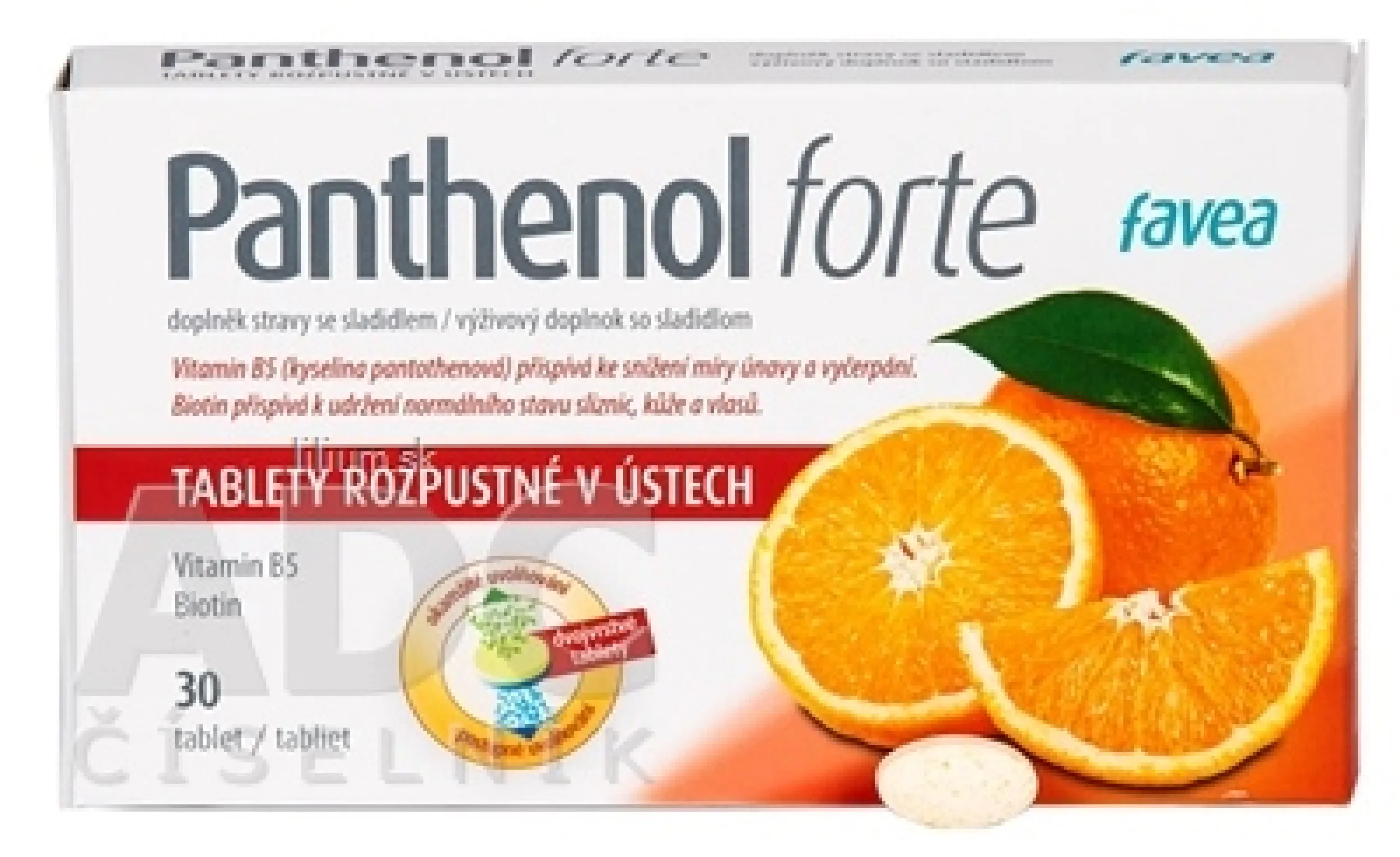 Výživový doplnok obsahuje panthenol (vitamín B5) a biotín.