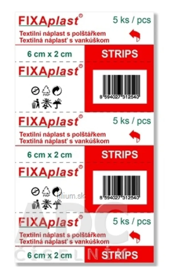 Textilná náplasť s vankúšikom s rozmerom 6 x 2 cm. Určená na malé rany, napr. pri porezaní alebo odretí. Viac na adcc.sk