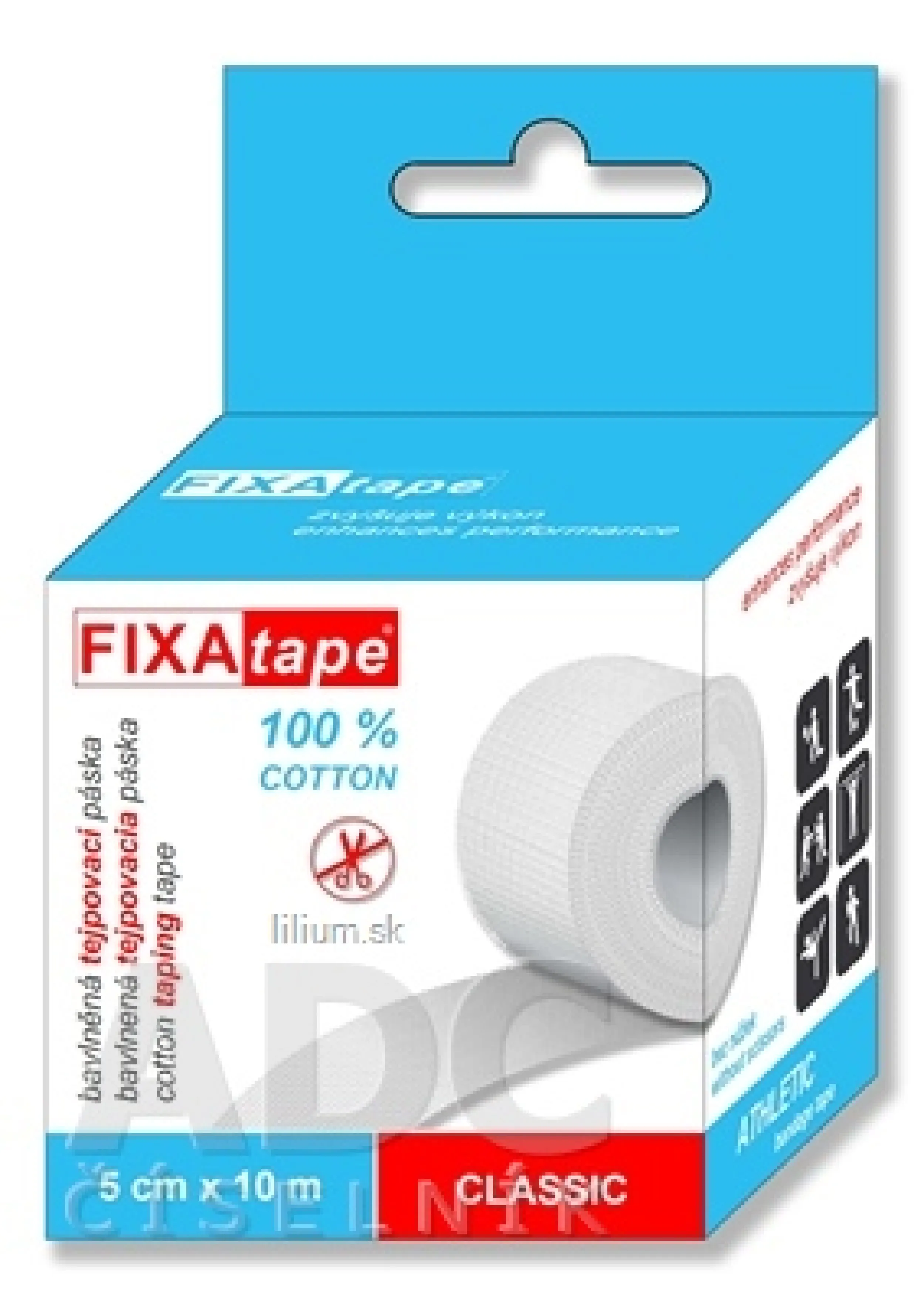 Určená pre spevnenie svalov, kĺbov a šliach pri zvýšenej pohybovej aktivite. Špeciálne bočné zúbkovanie zaručuje možnosť odtrhnutia v požadovanej dĺžke bez použitia nožníc. Možno použiť aj na fixáciu obväzov a dláh.