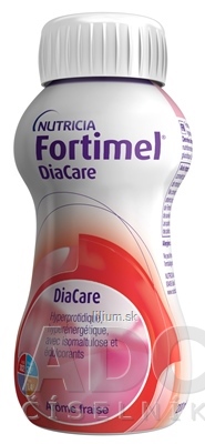 Potravina na osobitné lekárske účely. Obsahuje cukry a sladidlá. Na diétny režim pri podvýžive súvisiacej s ochorením u pacientov s diabetes mellitus alebo hyperglykémiou. Fortimel DiaCare je vysokoenergetická tekutá výživa s vysokým obsahom bielkovín. Obsahuje vlákninu. Bezgluténový. Viac na adcc.sk