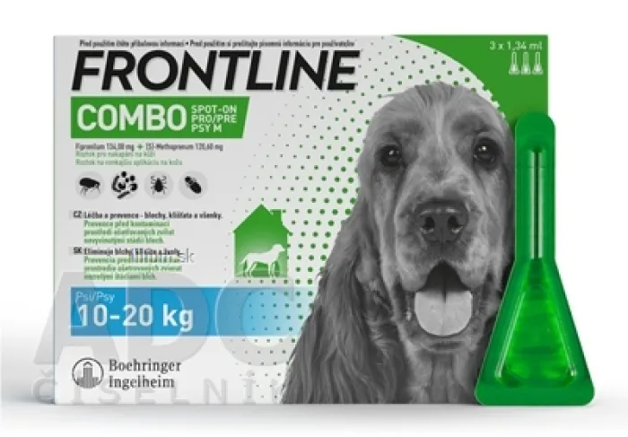 roztok na kožu proti kliešťom, blchám a švolám, v pipete, psy 10-20 kg, 3x1,34 ml