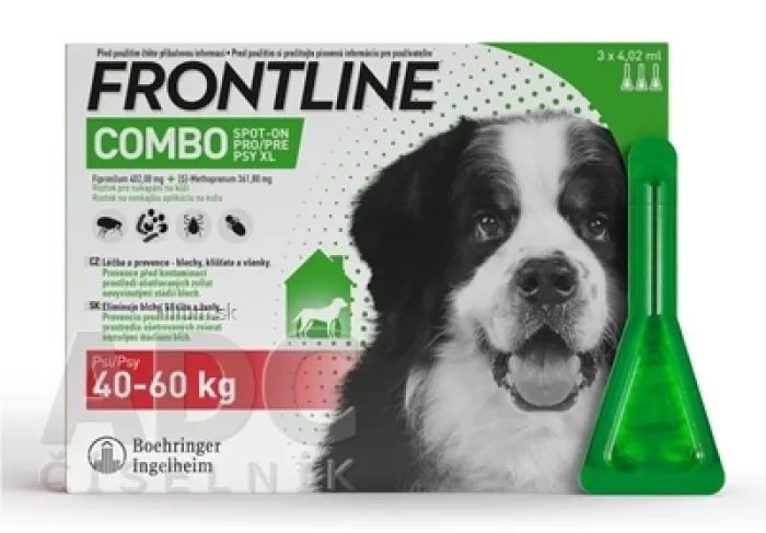 roztok na kožu proti kliešťom, blchám a švolám, v pipete, psy 40-60 kg, 3x4,02 ml